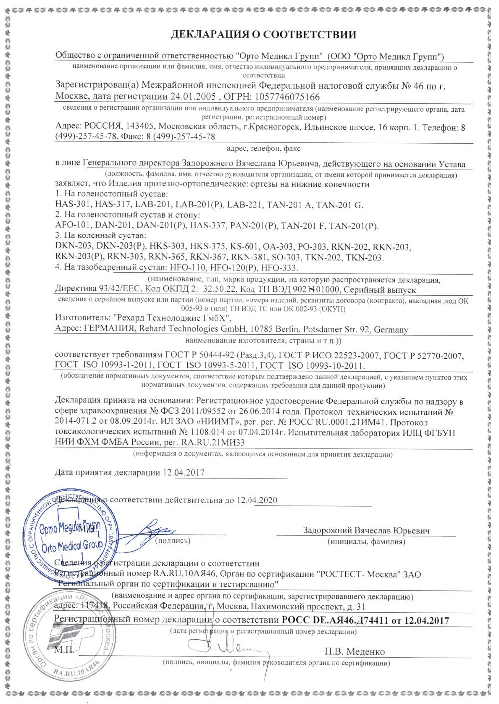 Согласно полученным результатом подобрать ортез Orlett по таблице подбора размеров